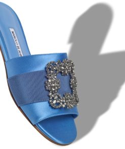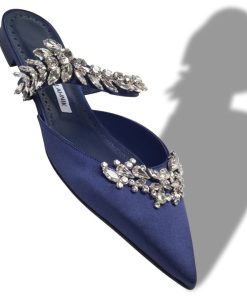 Manolo Blahnik Women’s Style Lurumflat | Navy Blue Satin Crystal Embellished Flat Mules | Blue