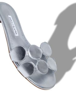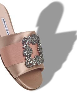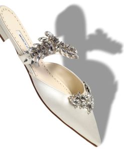 Manolo Blahnik Women’s Style Lurumflat | Light Cream Satin Crystal Embellished Flat Mules | Cream