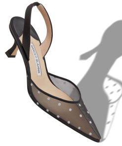 Manolo Blahnik Women’s Style Camparisli | Black Nappa Leather Pointed Toe Slingback Pumps | Black