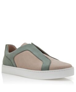 Grey calf leather low cut sneakers featuring green cut-out design detail, slip-on closure and rubber sole. Upper: 100% calf leather. Sole: 100% rubber. Lining: 100% calf leather.Heel measures 10 mm.UK sizing.Made in Italy.