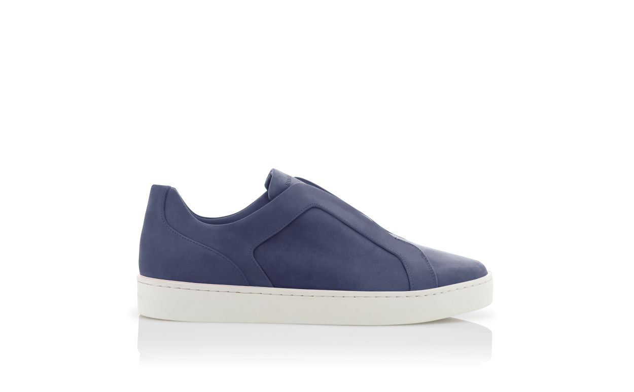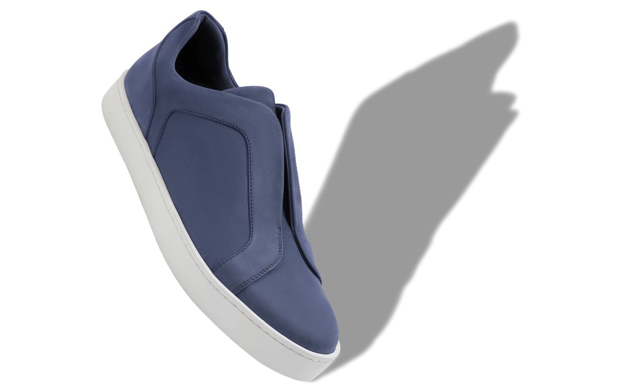 Navy blue calf leather sneakers featuring tonal swirl design, slip-on design and flat rubber sole.Upper: 100% calf leather. Sole: 100% rubber. Lining: 100% calf leather. Heel measures 10 mm. UK sizing. Made in Italy.