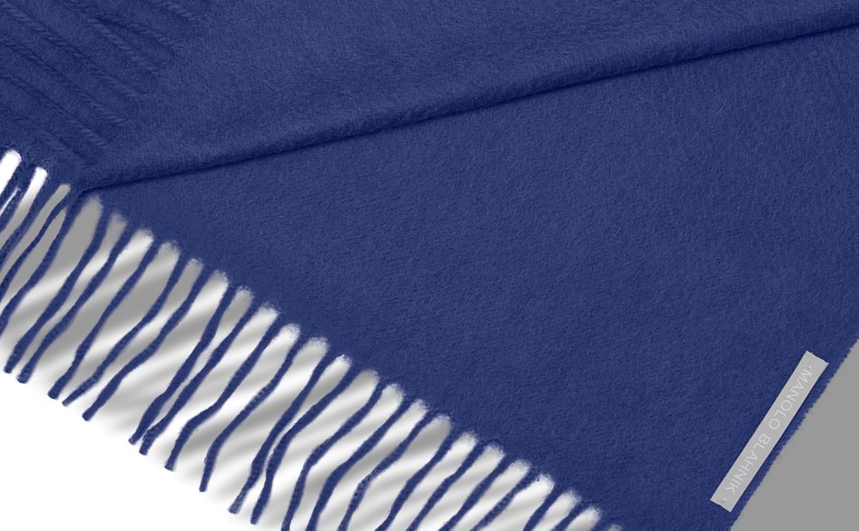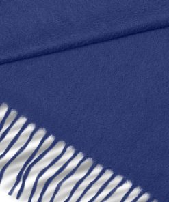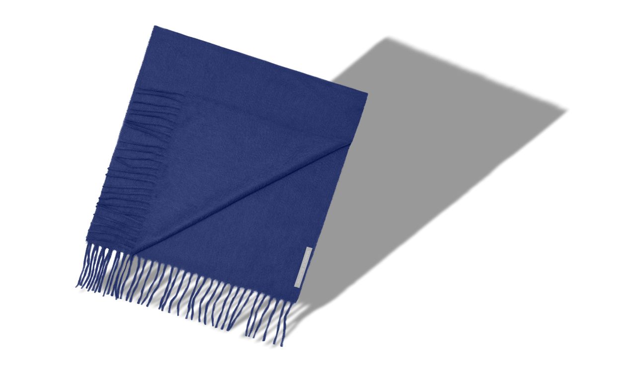 Blue cashmere scarf featuring a soft handle and classic tassel fringing. Measures 36 x 183 cm. 100% cashmere. Made in Scotland.