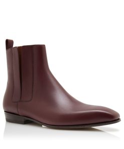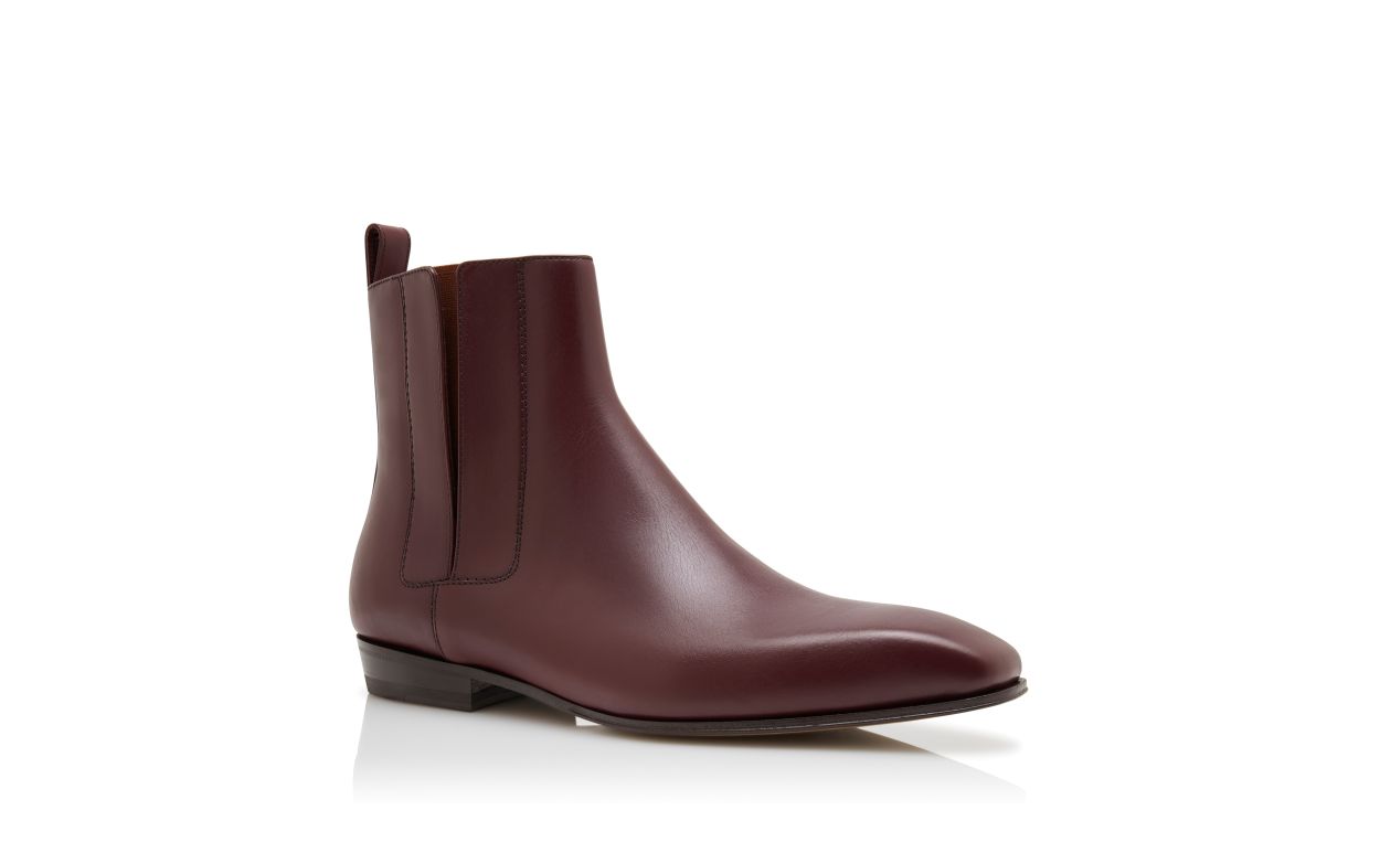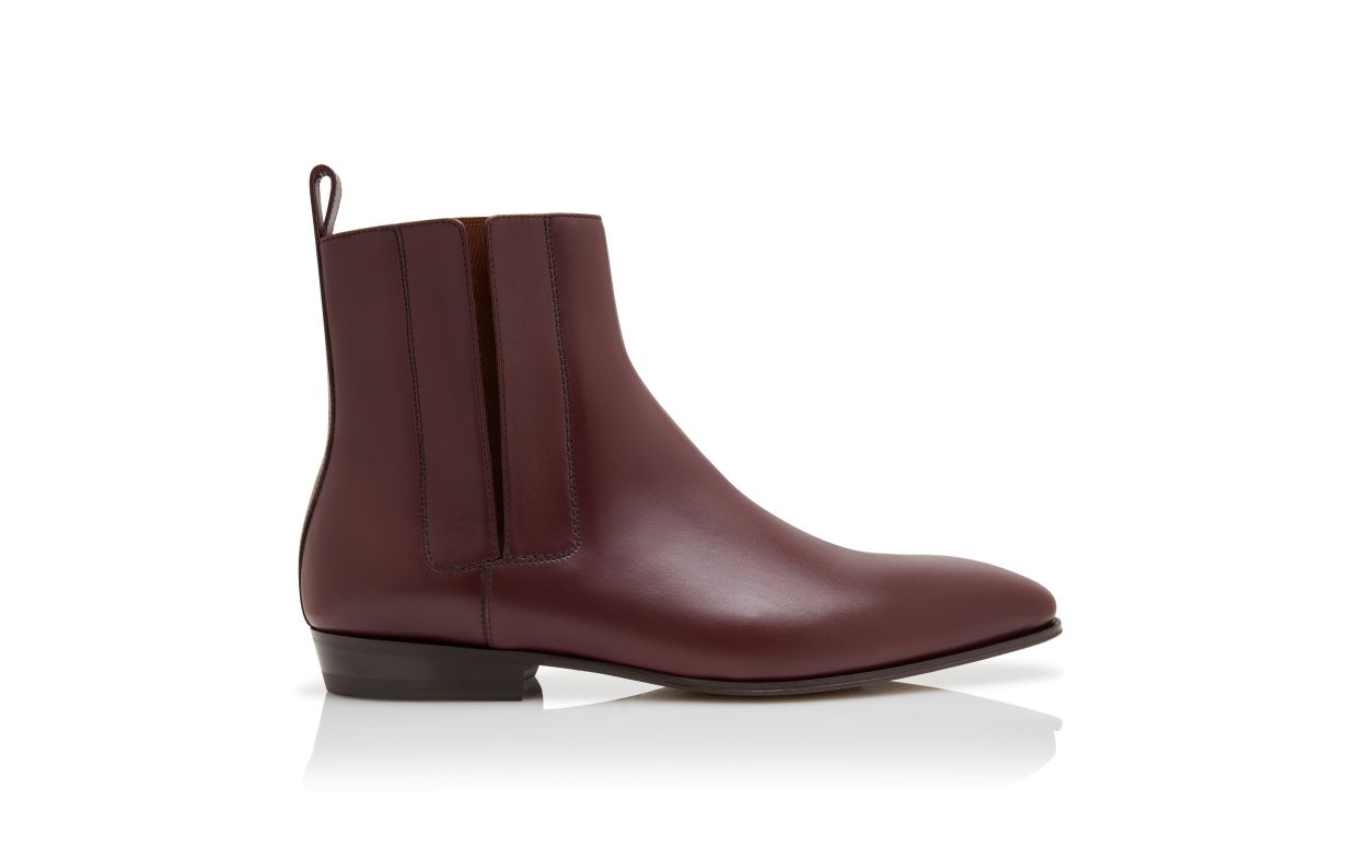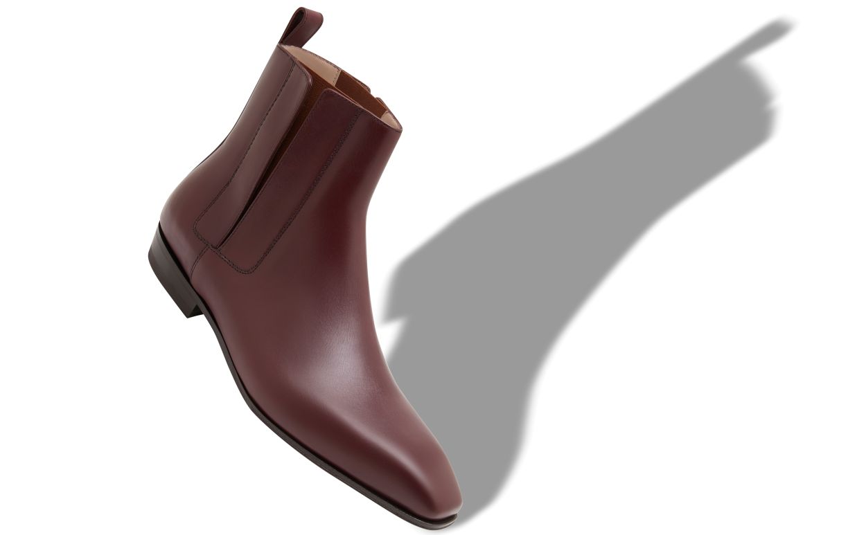 Dark red calf leather ankle boots featuring rear pull tab.Upper: 80% calf suede, 20% fabric. Sole: 95% calf leather, 5% rubber. Lining: 100% calf leather. Heel measures 10 mm. UK sizing. Made in Italy.