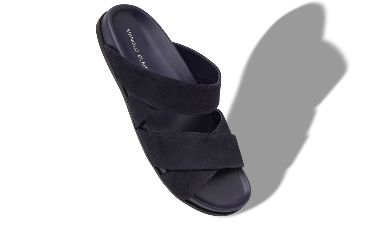 Manolo Blahnik Inezmu | Men’s Navy Blue Suede Sandals | Men’s Style