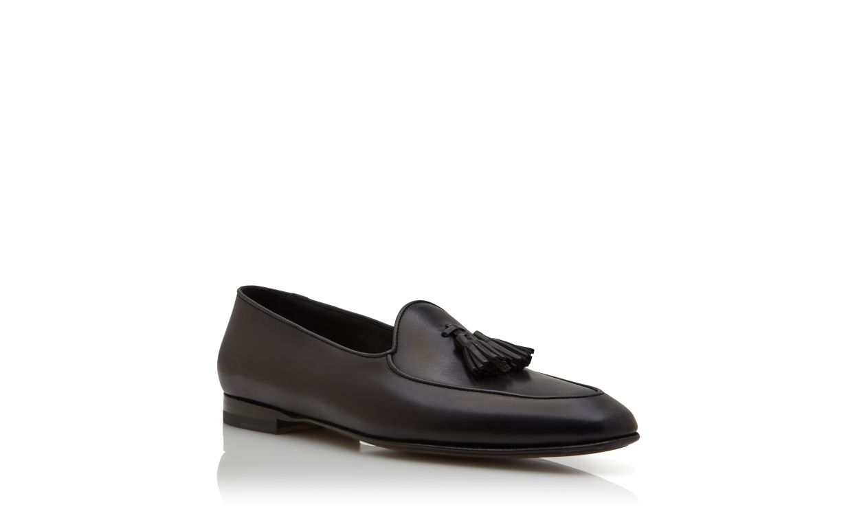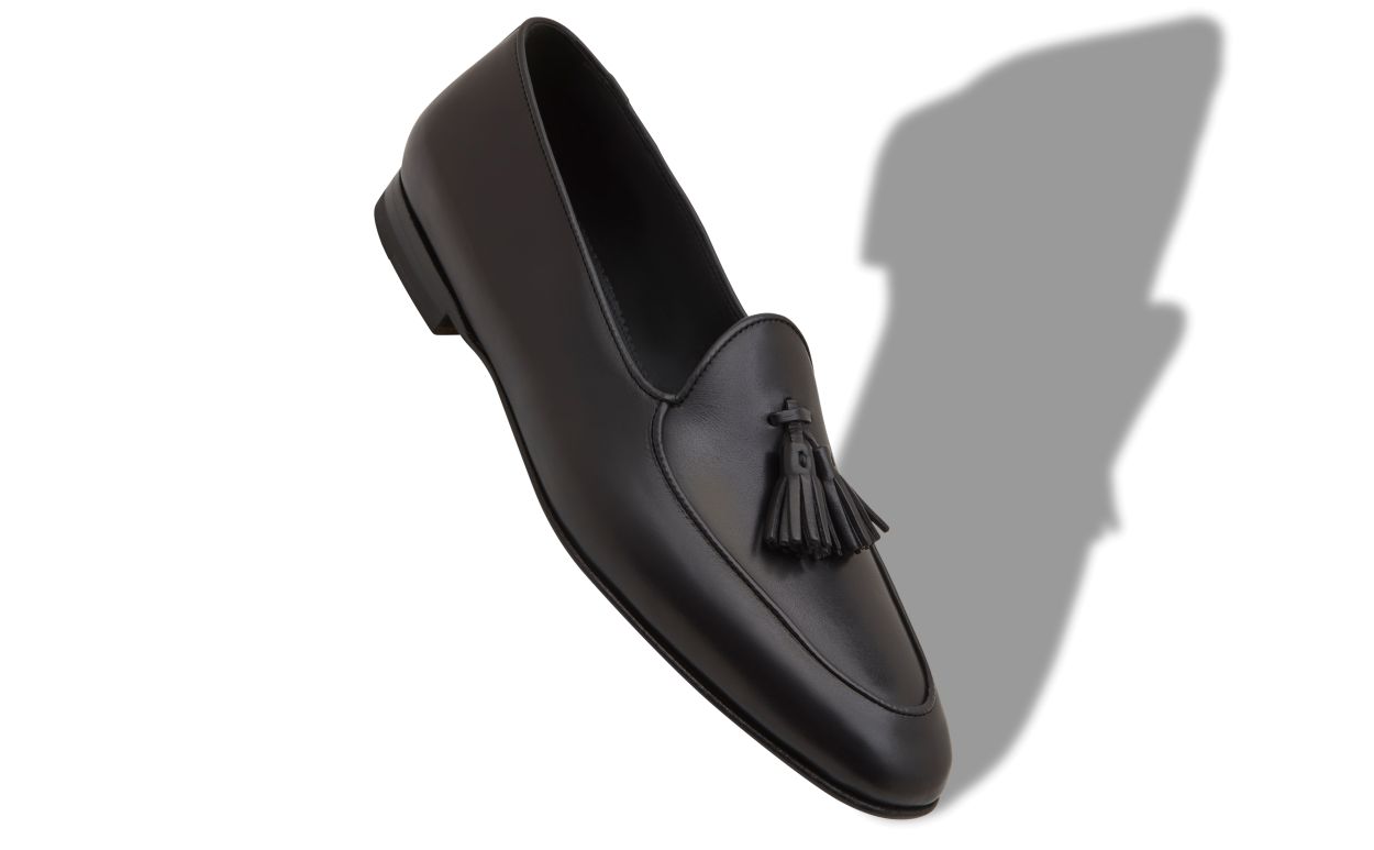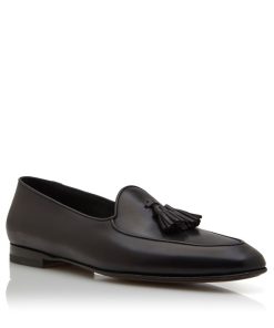 Black calf leather loafers featuring apron cut design and tassel design detail.Upper: 100% calf leather. Sole: 95% calf leather, 5% rubber. Lining: 100% calf leather.Heel measures 10 mm.UK sizing.Made in Italy.