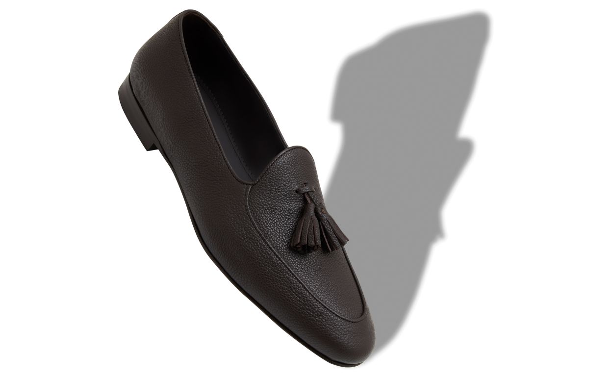 Dark Brown calf leather loafers featuring apron cut design and tassel design detail.Upper: 100% calf leather. Sole: 95% calf leather, 5% rubber. Lining: 100% calf leather.Heel measures 10 mm.UK sizing.Made in Italy.