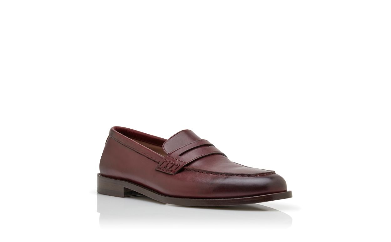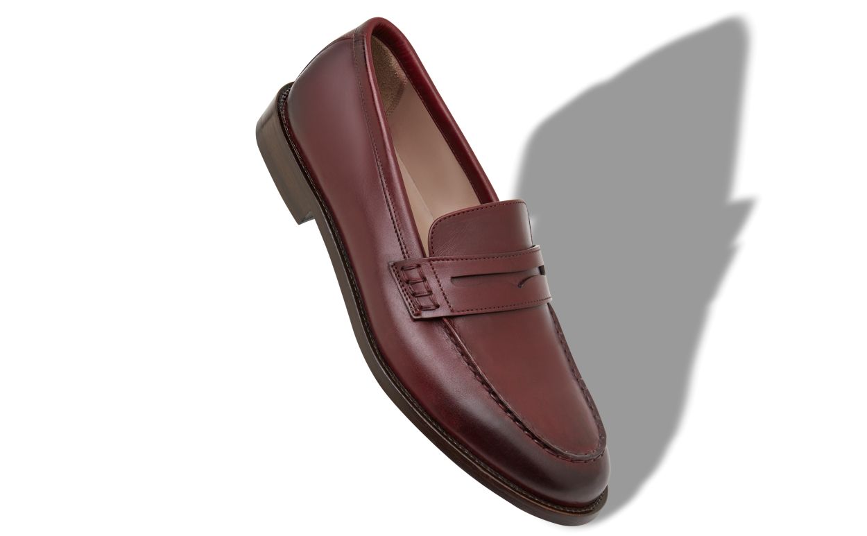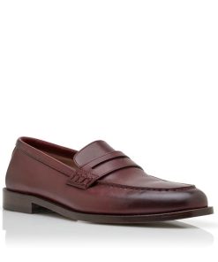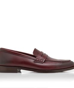 Brown calf leather penny loafers featuring apron cut design and decorative penny keeper with stitch detail.Upper: 100% calf leather. Sole: 95% calf leather, 5% rubber. Lining: 100% calf leather. Heel measures 10 mm. UK sizing. Made in Italy.