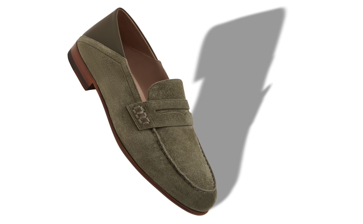 Manolo Blahnik Plymouth | Men’s Khaki Suede Penny Loafers | Khaki | Men’s Style