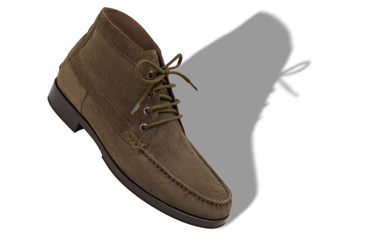 Manolo Blahnik Rhinebeck | Men’s Dark Green Calf Suede Ankle Boots | Khaki | Men’s Style