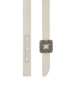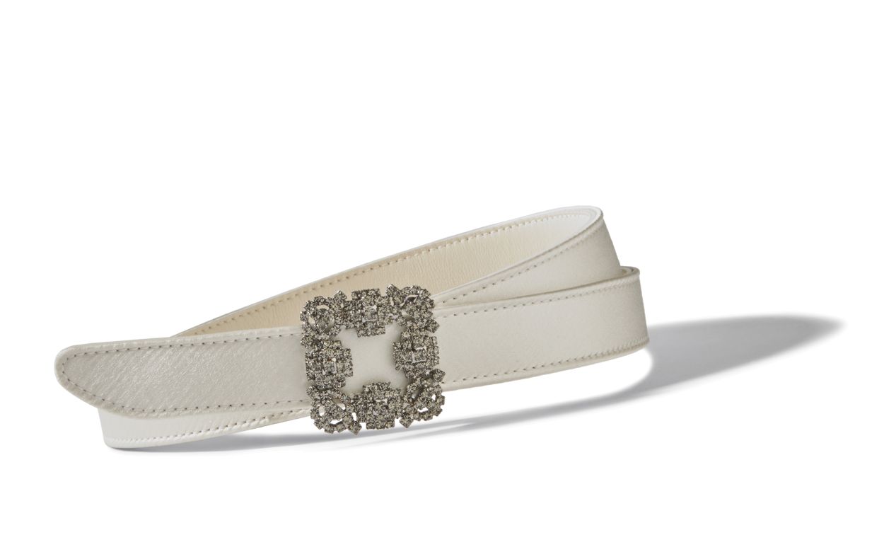 Manolo Blahnik Women’s Hangisi Belt Mini | Off-white Satin Crystal Buckled Belt | Cream