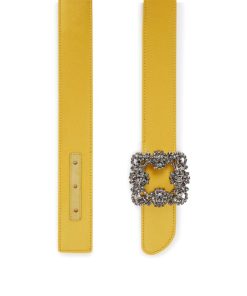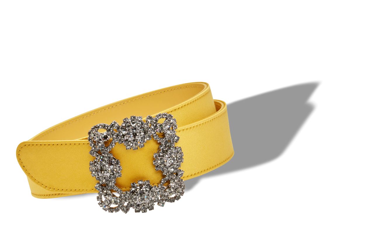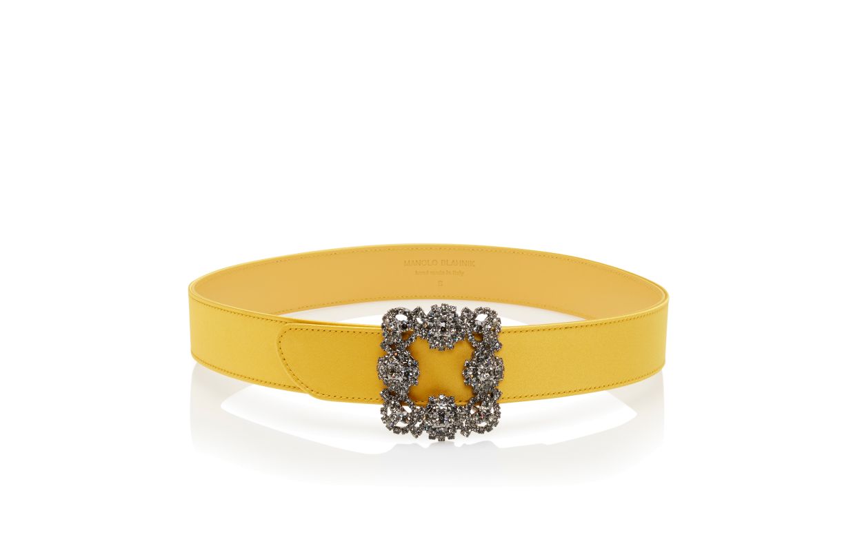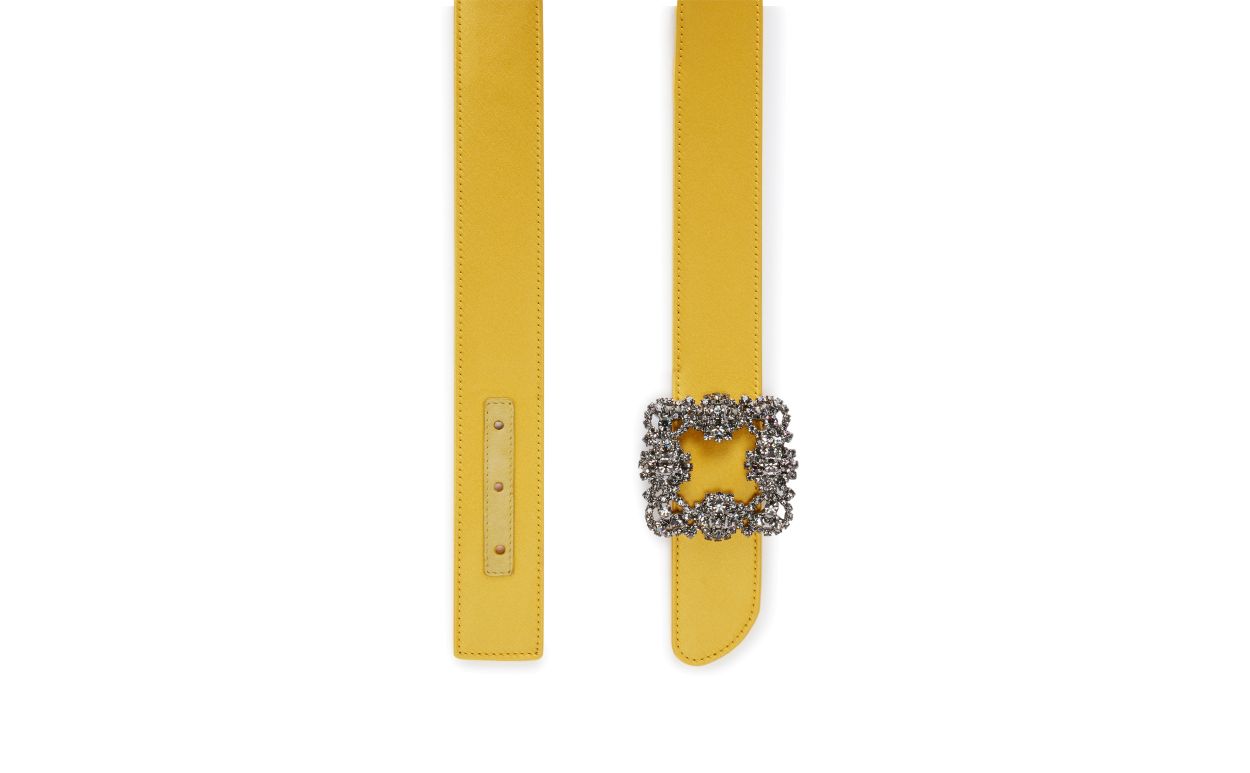 Manolo Blahnik Women’s Hangisi Belt | Yellow Satin Crystal Buckled Belt | Yellow