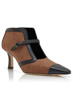 Manolo Blahnik Women’s Style Bermion | Brown And Black Wool Ankle Boots