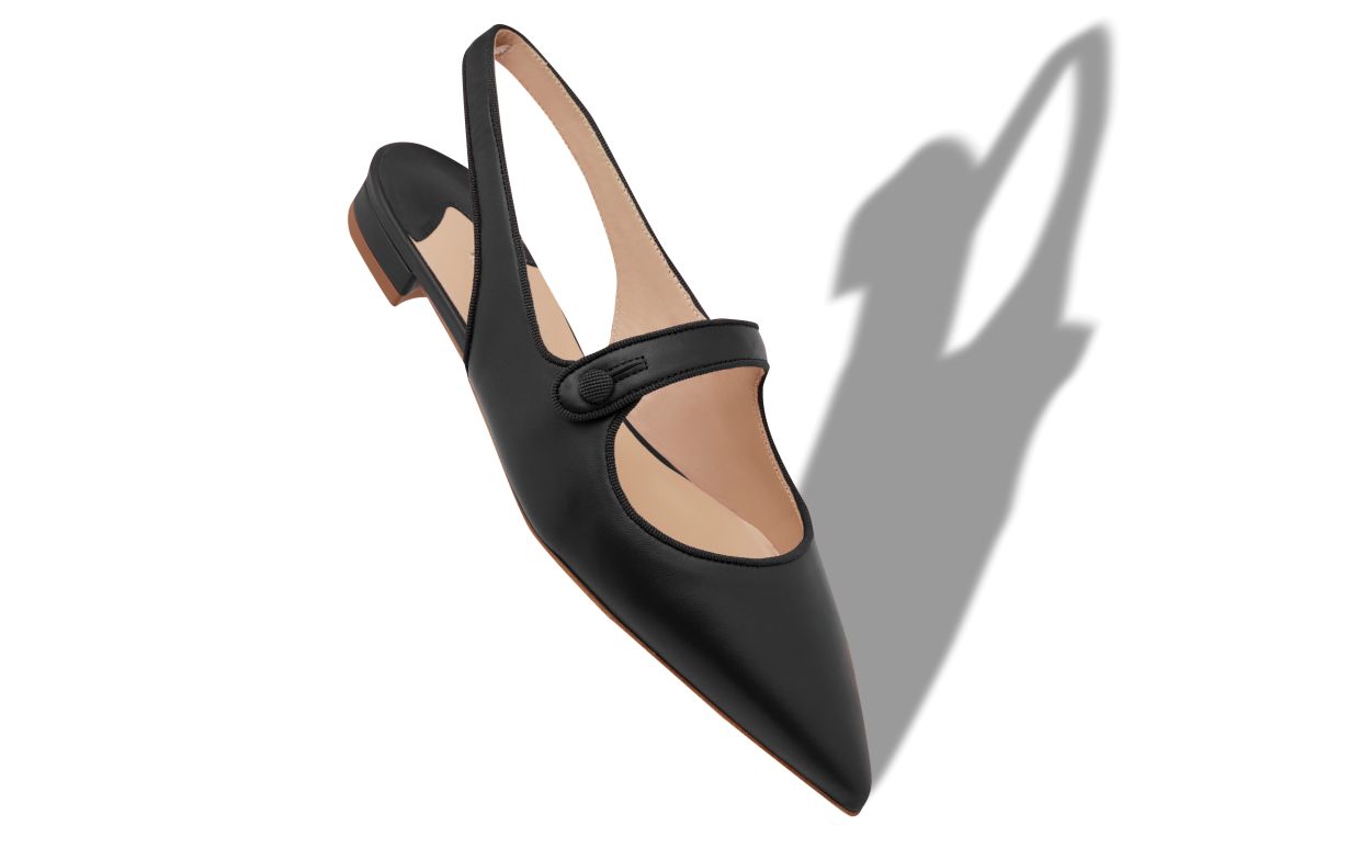 Manolo Blahnik Women’s Style Campariflatsli | Black Nappa Leather Slingback Flat Pumps | Black