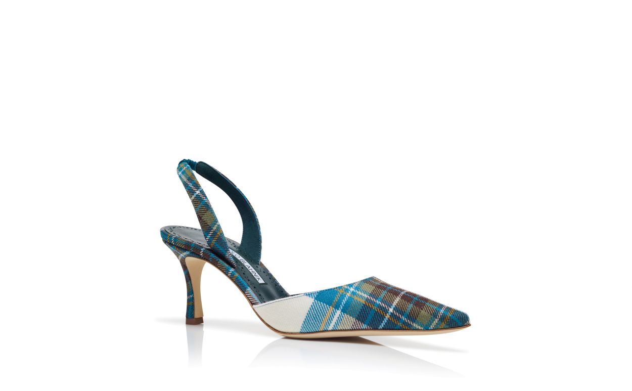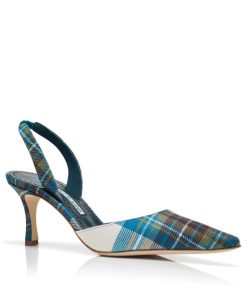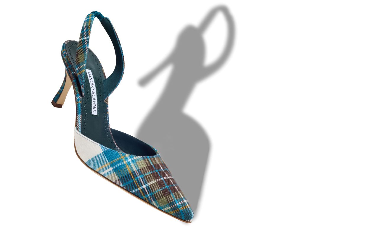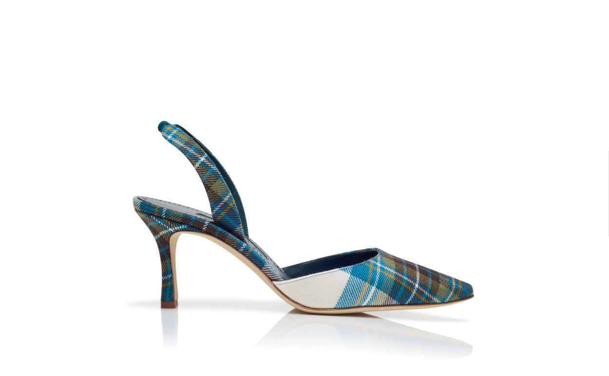 Manolo Blahnik Women’s Style Carolyne 70 | Blue Wool Tartan Slingback Pumps