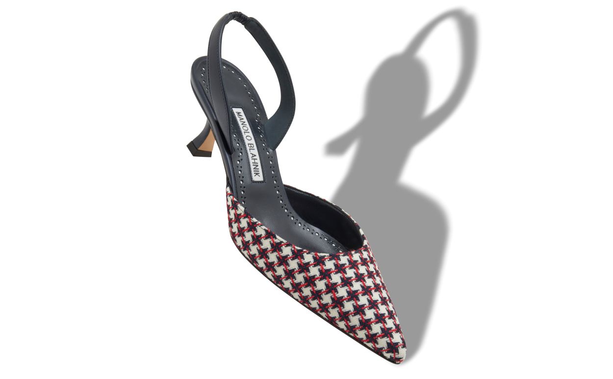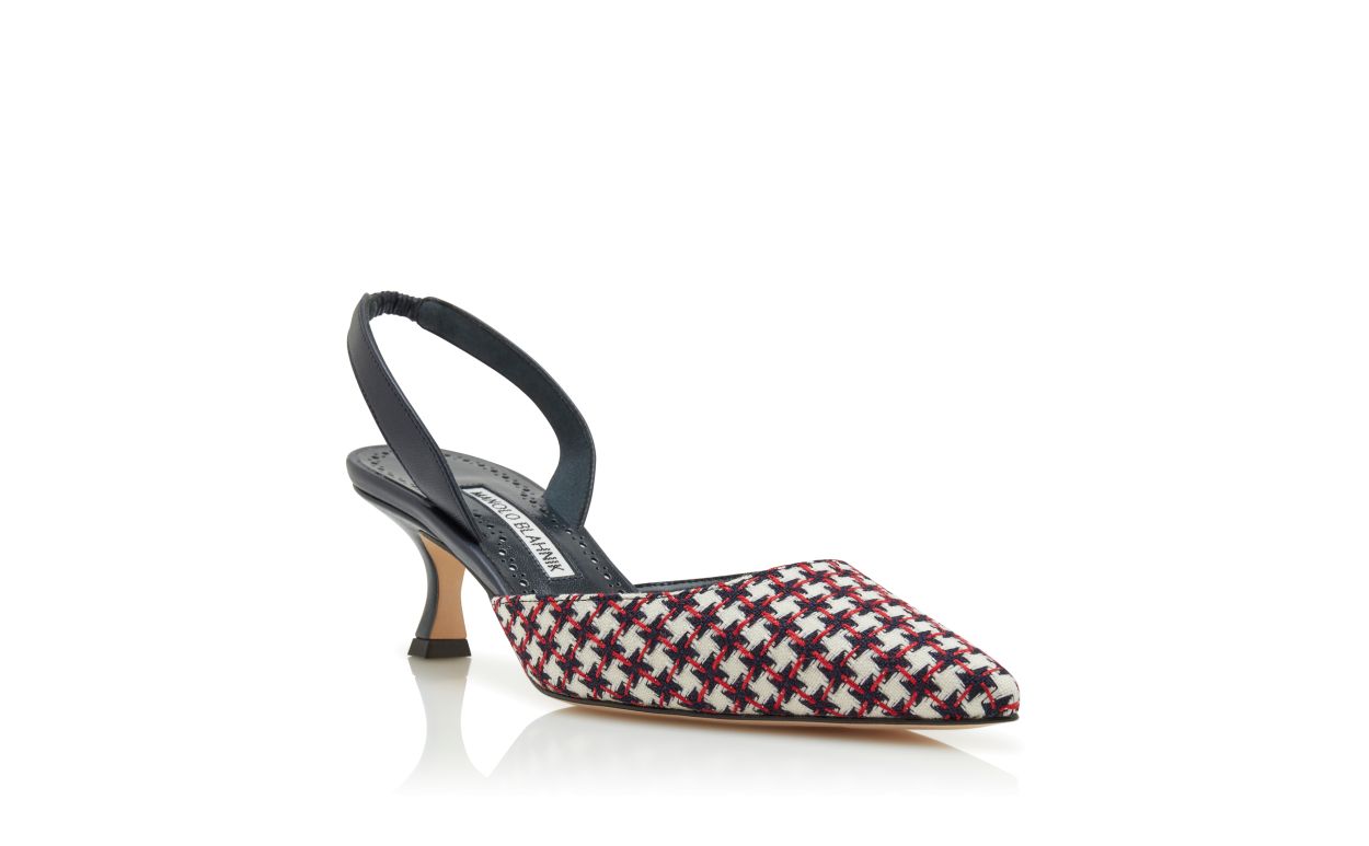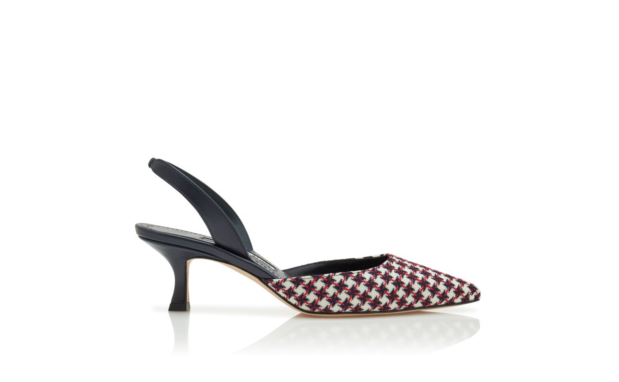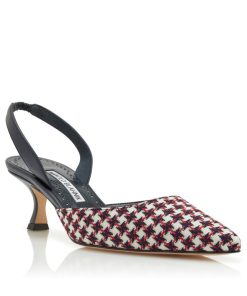 Manolo Blahnik Women’s Style Carolyne | Navy Blue Wool Dogtooth Slingback Pumps