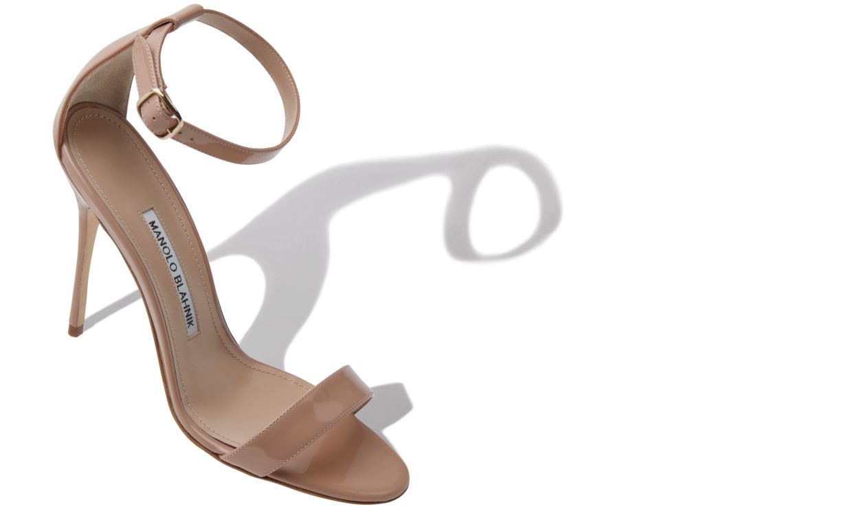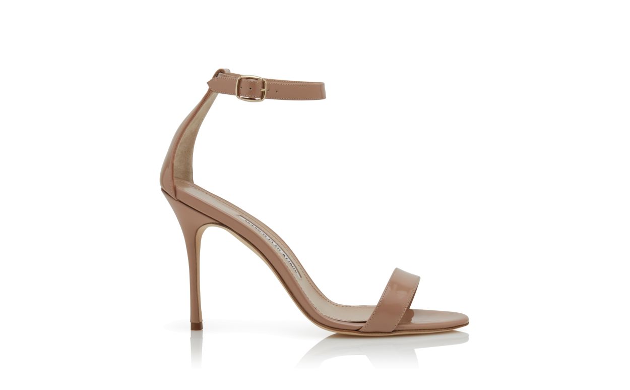 Manolo Blahnik Women’s Style Chaos | Beige Patent Leather Ankle Strap Sandals | Nude