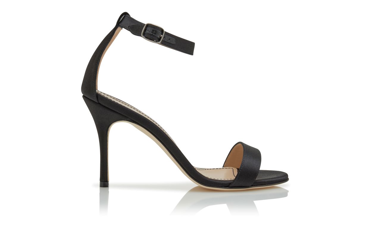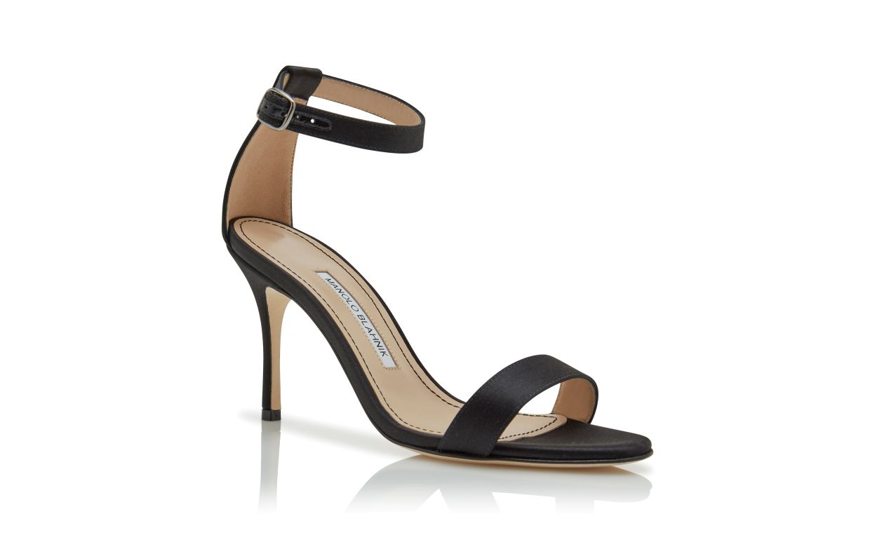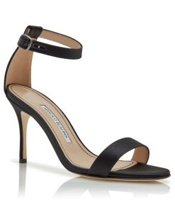 Manolo Blahnik Women’s Style Chaos | Black Satin Ankle Strap Sandals | Black