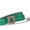 Blue satin open toe flat mules featuring crossover straps with decorative jewel buckle. Finished with flat rubber sole. Upper: 72% viscose, 28% silk. Sole: 100% rubber. Lining: 100% kid leather. Heel measures 10 mm.Italian sizing.Made in Italy.