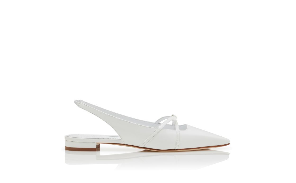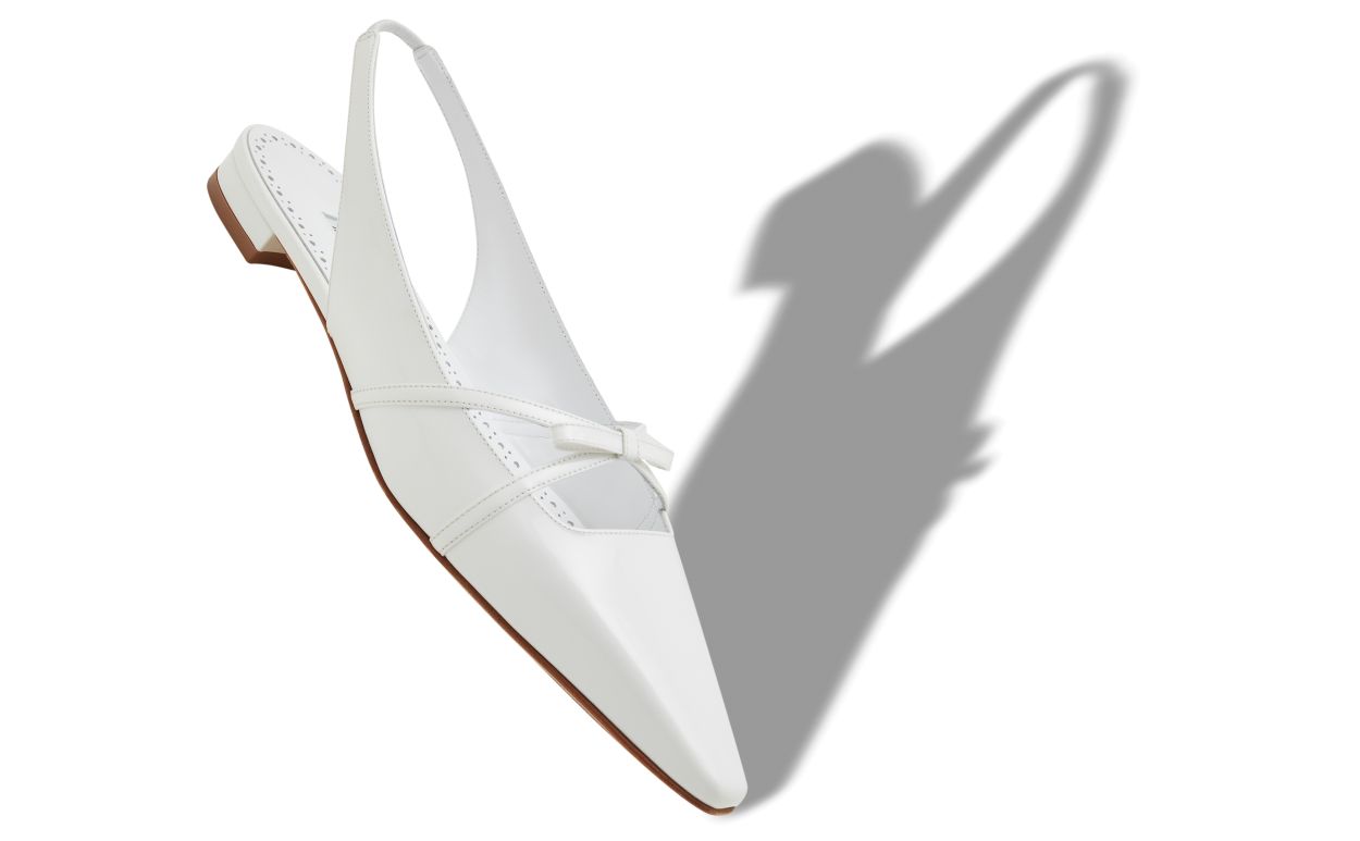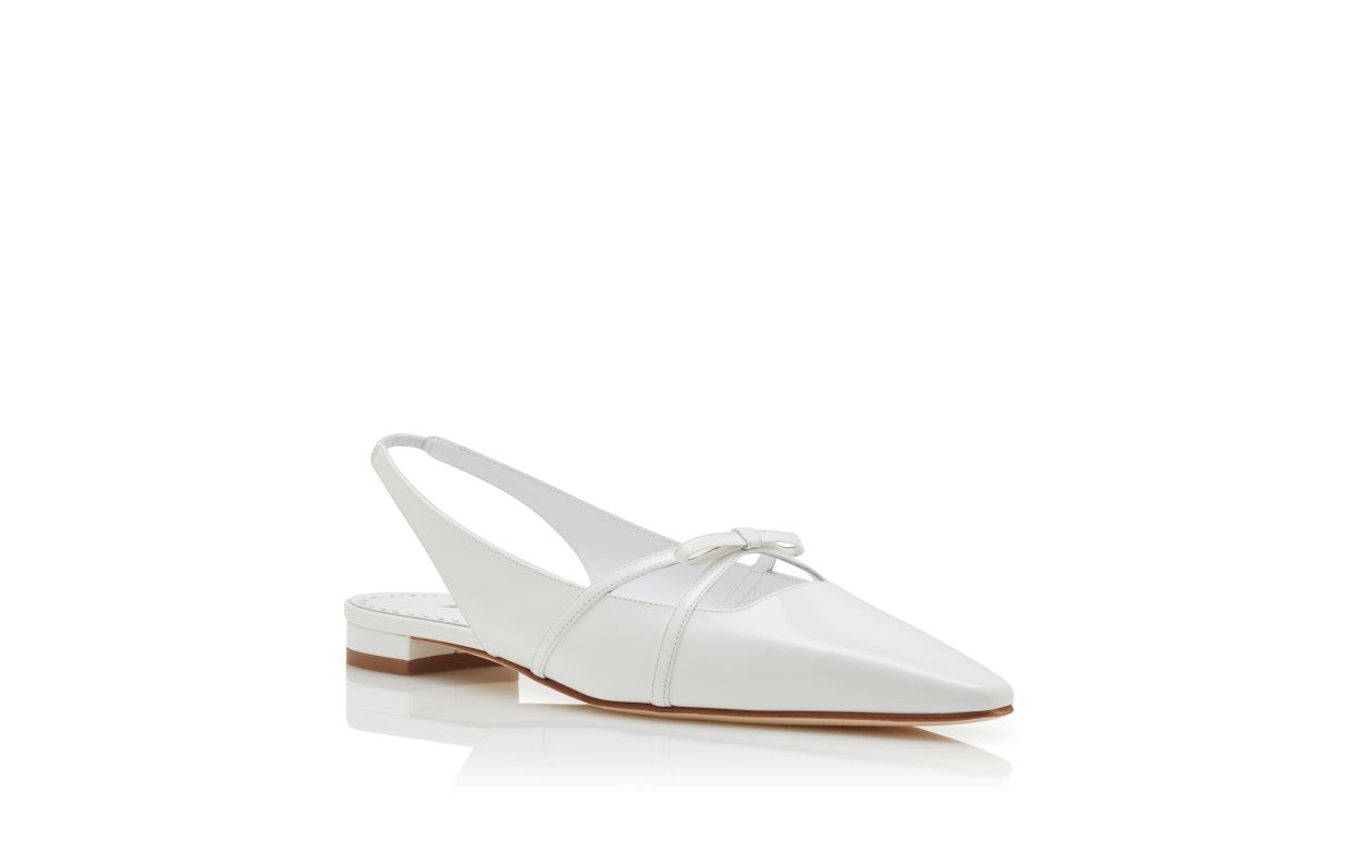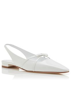 Manolo Blahnik Women’s Style Dariasli | White Patent Leather Bow Detail Slingback Flat Pumps | White