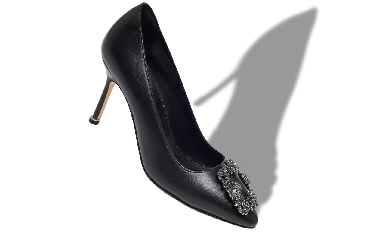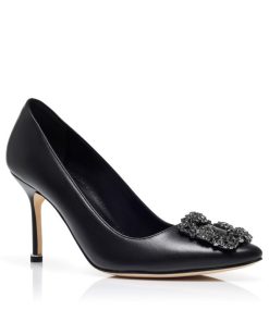 Manolo Blahnik Women’s Style Hangisi 90 | Black Leather Jewel Buckle Pumps
