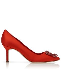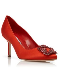 Manolo Blahnik Women’s Style Hangisi Red 70 | Red Satin Jewel Buckle Pumps