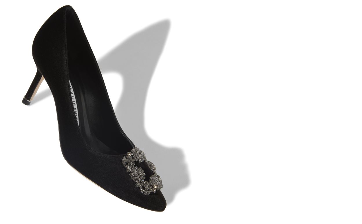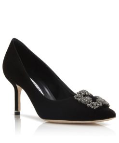 Manolo Blahnik Women’s Style Hangisi Velvet 70 | Black Velvet Jewel Buckle Pumps | Black