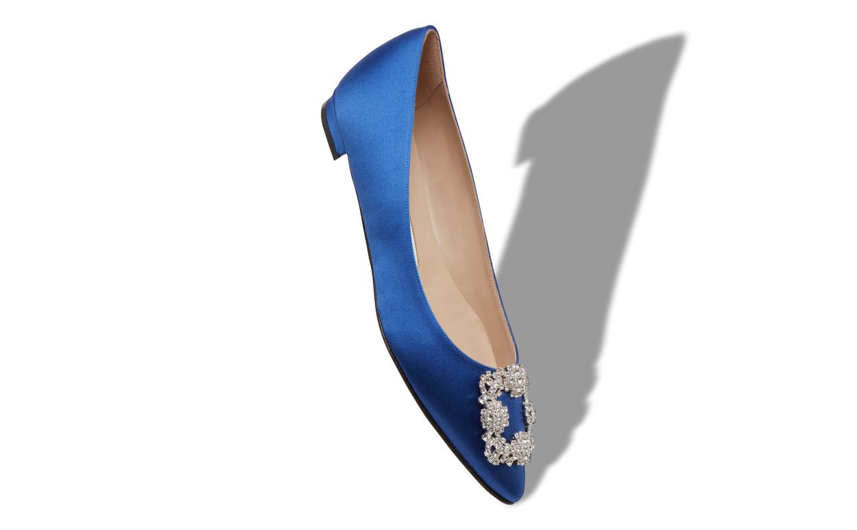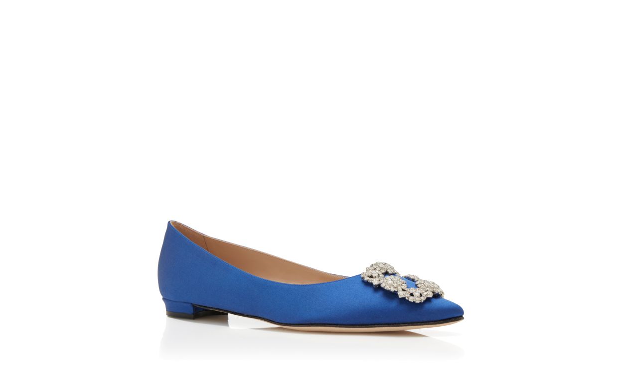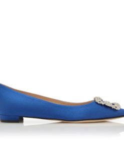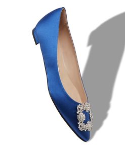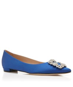 Manolo Blahnik Women’s Style Hangisiflat | Blue Satin Jewel Buckle Flat Pumps | Blue