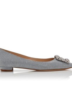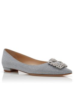 Manolo Blahnik Women’s Style Hangisiflat Glitter | Silver Glitter Fabric Jewel Buckle Flat Pumps