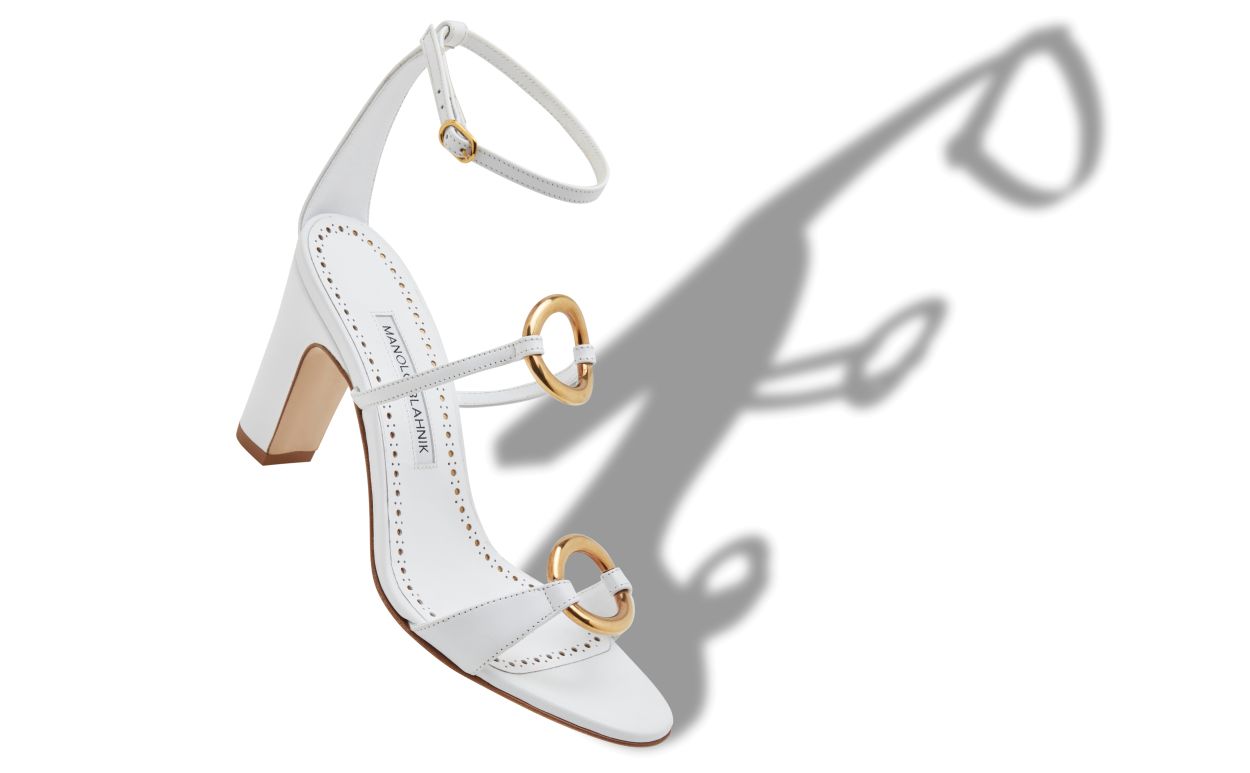 Manolo Blahnik Women’s Style Hisfahan | White Calf Leather Ankle Strap Sandals
