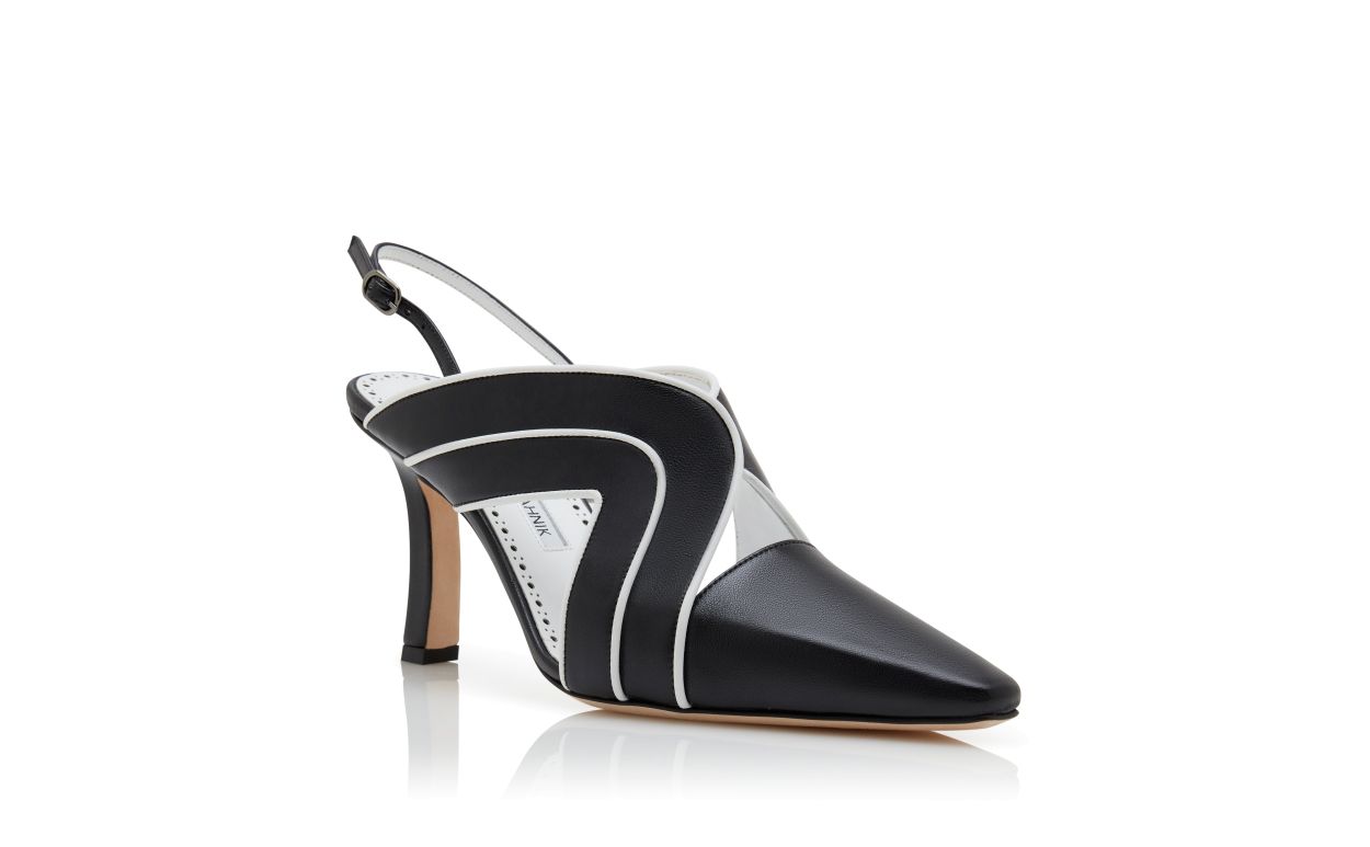 Manolo Blahnik Women’s Style Iollas | Black And White Nappa Leather Slingback Pumps