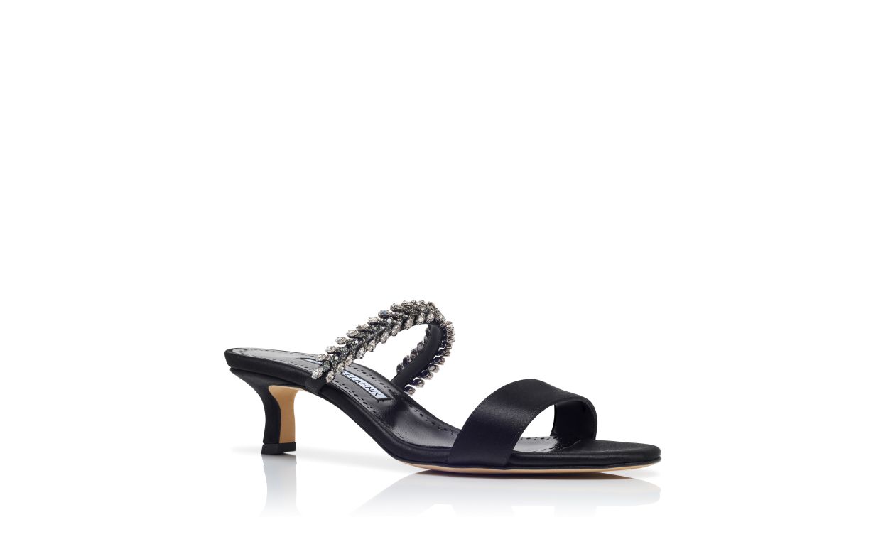 Manolo Blahnik Women’s Style Kifasan | Black Satin Jewel Embellished Mules