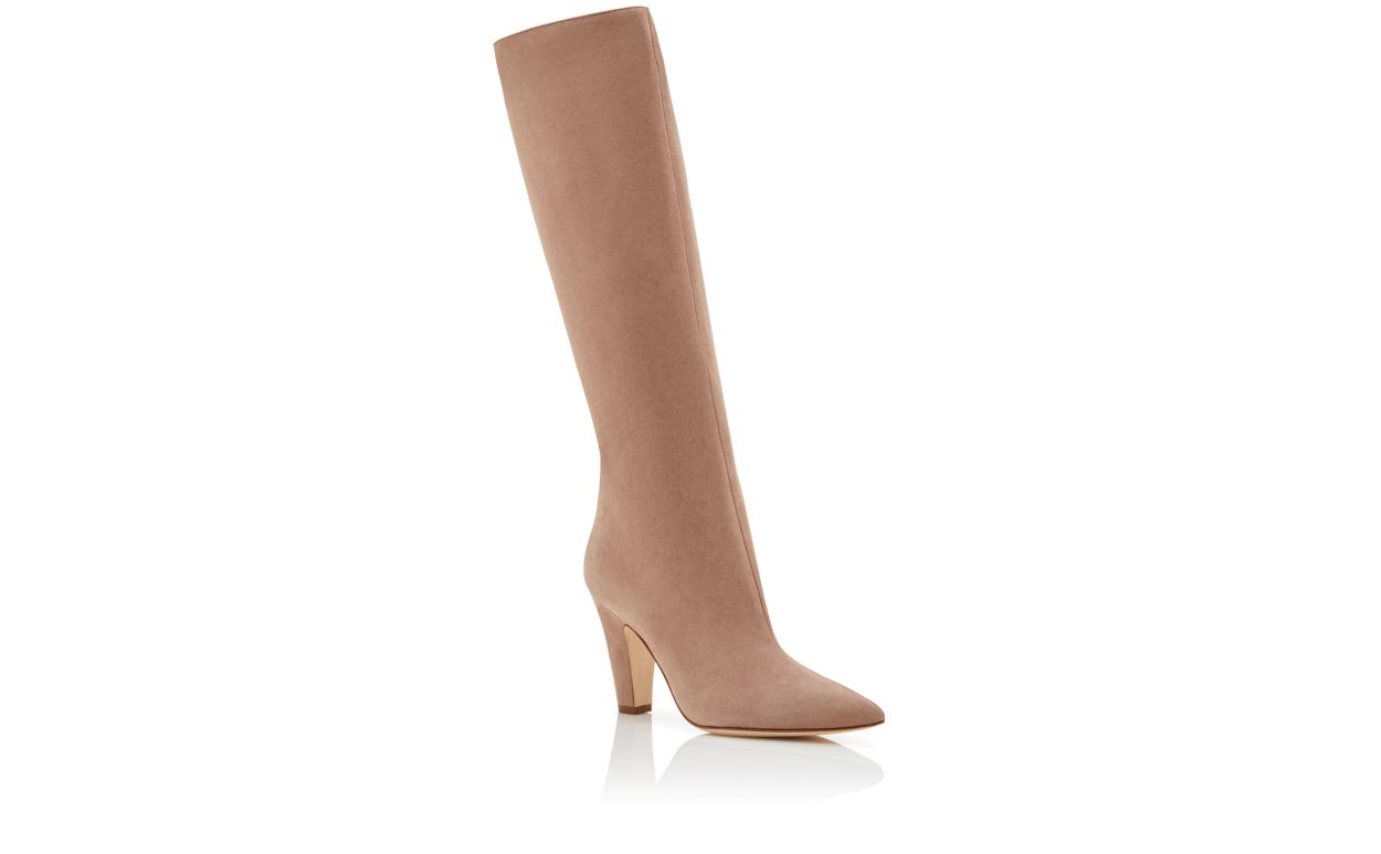 Manolo Blahnik Women’s Style Lina | Dark Beige Suede Knee High Boots | Nude