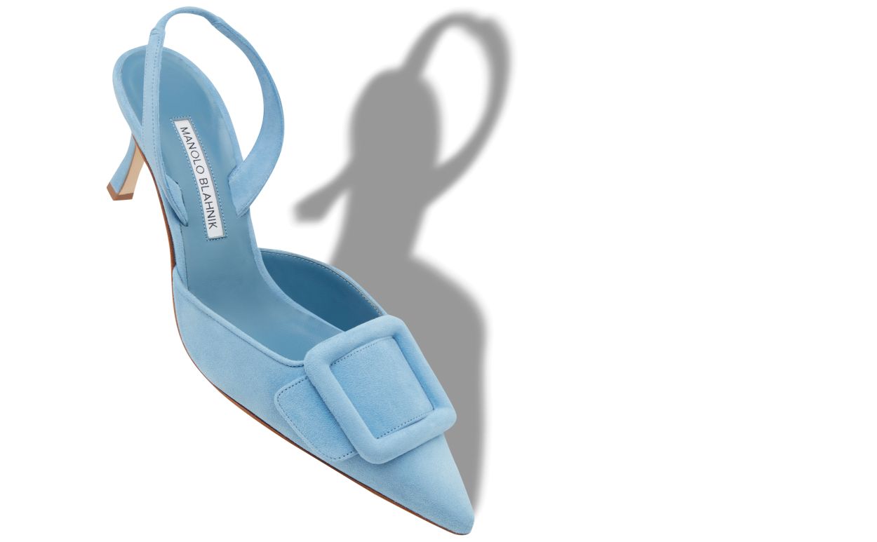 Manolo Blahnik Women’s Style Maysli | Light Blue Suede Buckle Detail Slingback Pumps | Blue