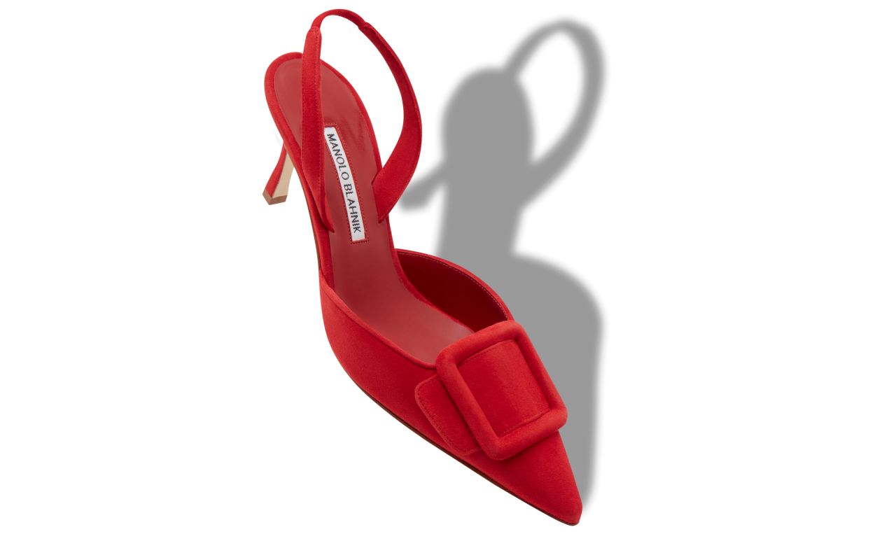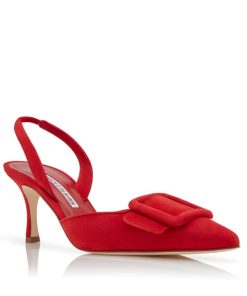 Manolo Blahnik Women’s Style Maysli | Red Suede Slingback Pumps | Red