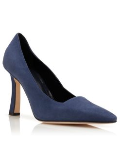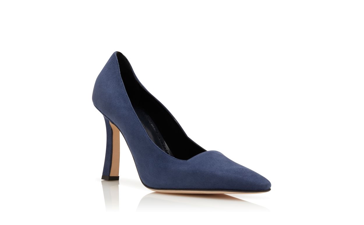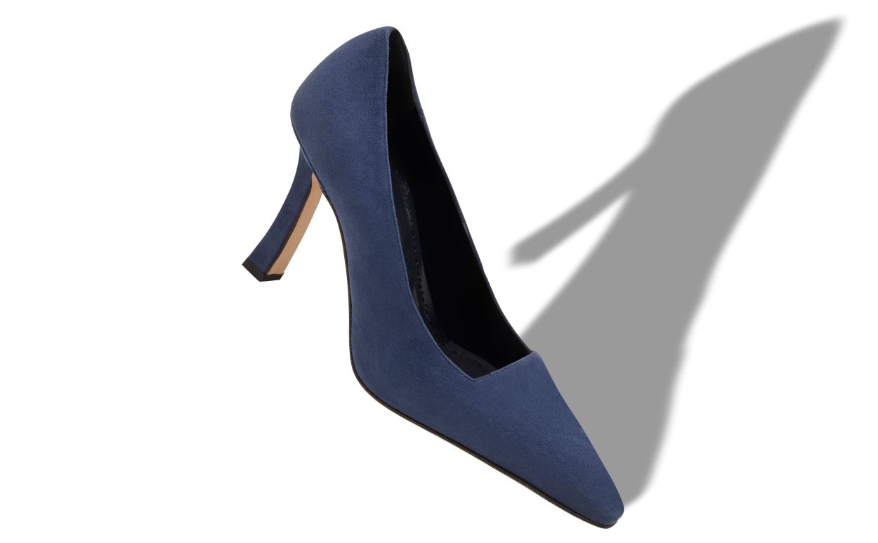 Manolo Blahnik Women’s Style Moira | Navy Blue Suede Square Cut Pumps | Blue