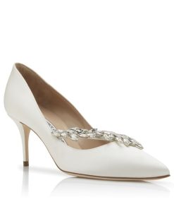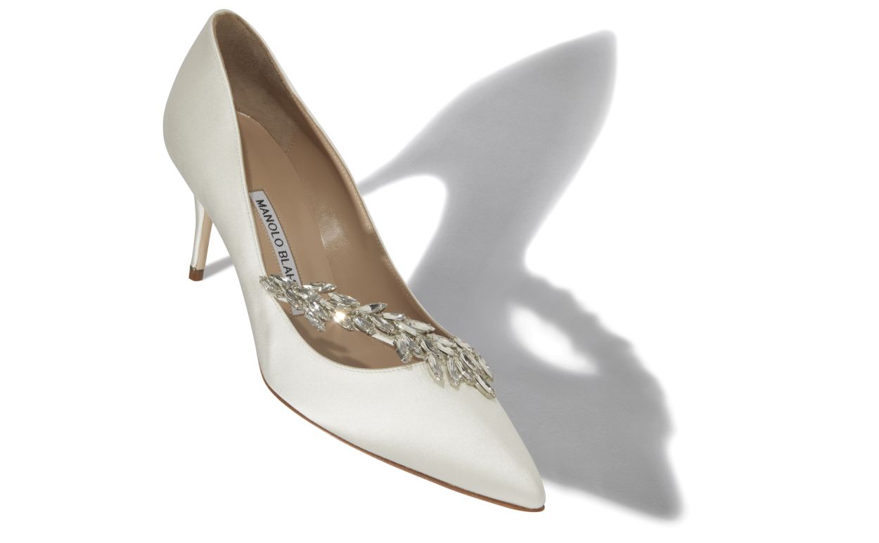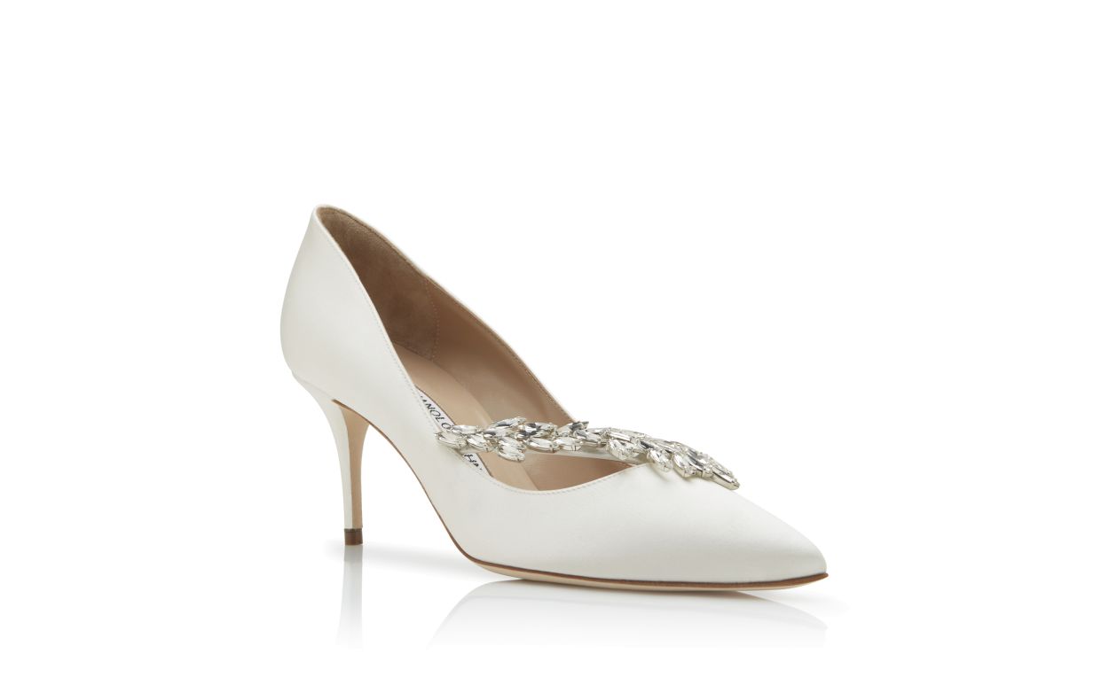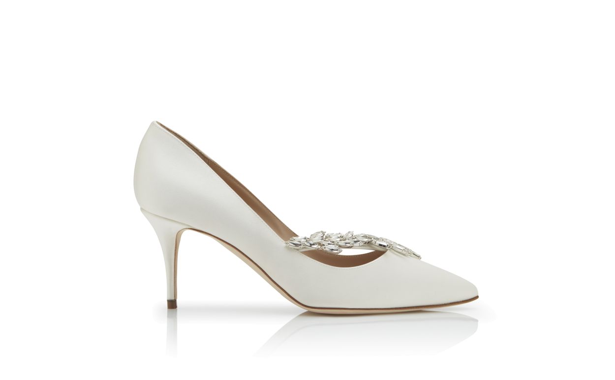 Manolo Blahnik Women’s Style Nadira 70 | White Satin Jewel Buckle Pumps