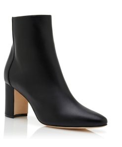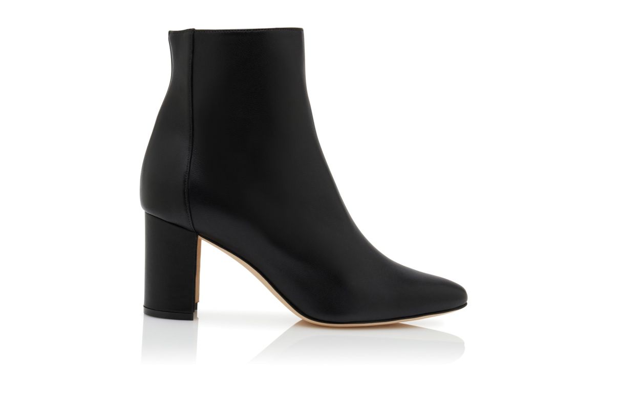 Black nappa leather pointed toe ankle boots featuring side zip closure and block mid heel.Upper: 100% lamb nappa. Sole: 100% calf leather. Lining: 100% kid leather.Heel measures 70 mm.Italian sizing.Made in Italy.