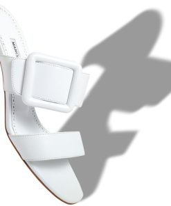 White nappa leather open toe mules featuring decorative buckle detail and finished with mid block heel.Upper: 100% lamb nappa. Sole: 100% calf leather.Lining: 100% kid leather. Heel measures 50 mm. Italian sizing. Made in Italy.
